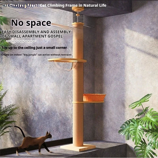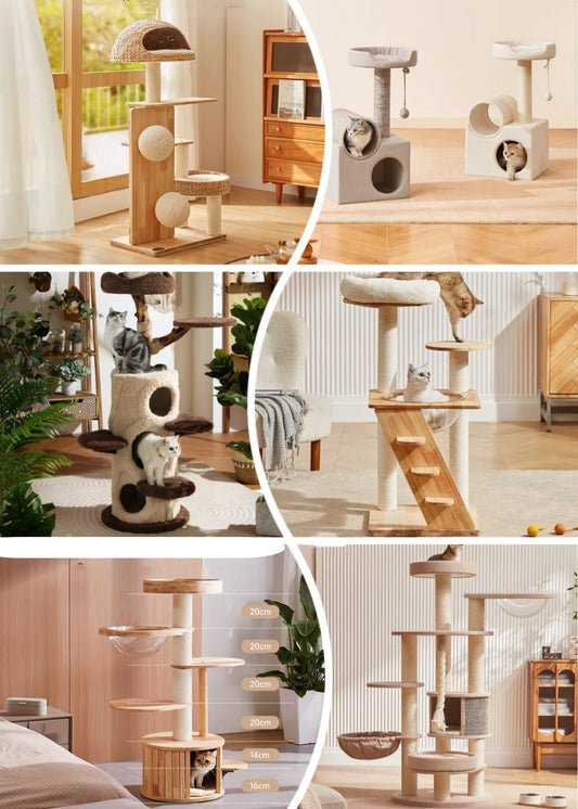 Cats Tree Solid Wood Pets Furniture Climbing Cat Tower Suitable for cats Multifunction Adjustable Multilayer Cat Climbing Frame